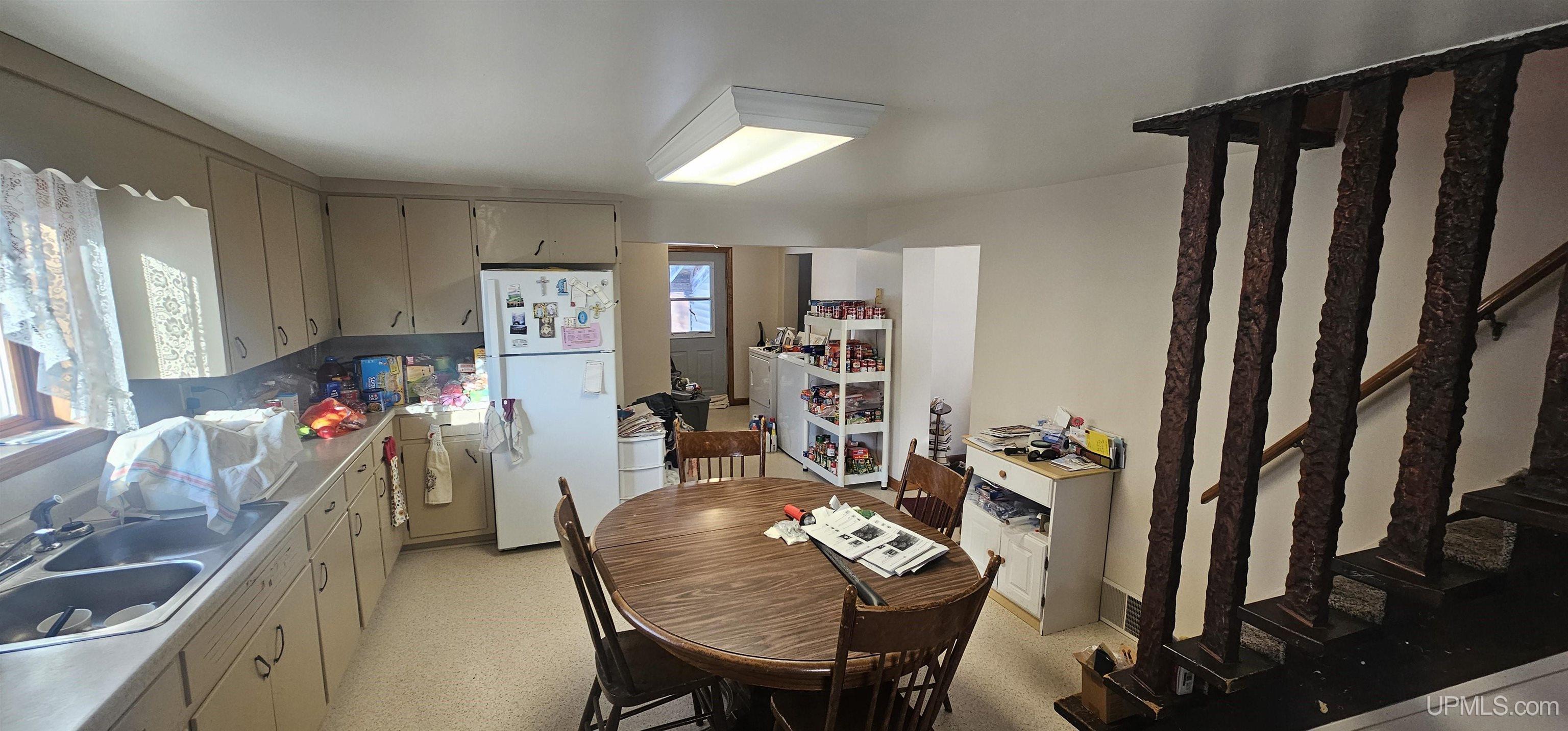 PREMIER LOCATION in Lake Linden. This updated home is situated on an expansive lot with exceptional outbuildings. Here is a rare opportunity to own a well-cared for property in a wonderful setting with convenient access to local shops, dining and amenities. SHOES OFF PLEASE...This 2 bedroom home + den has been lovingly maintained and cherished by the same owners for over 64 years. Here are many of the great features and updates; a high efficiency furnace in 2021, metal roof, vinyl siding, some new windows and updated insulation. The interior boasts a remodeled full kitchen and bath, drywall on the main level and modern flooring. The heart of the home is a cooks inspired eat-in kitchen with an abundance of cabinets. Enjoy the convenience of a main-floor laundry. Relax in the living room filled with natural light. The oversized detached 2.5 car garage is pristine, was built in 2004 and has easy front and rear door access for your equipment. The large parking pad will accommodate all of your guests. Enjoy the best of both worlds in this charming home featuring a private backyard and a peaceful country-like setting -- all just minutes from town. This spacious yard offers plenty of room for relaxing, gardening or entertaining. The 2 story reddish barn with electricity was Joe's Live Bait for years, now used for storage and can be utilized as you need. There is an additional large multi-use building along with a couple of sheds for your tools, toys and hobbies. Schedule your private tour and see how this one can fit all of your needs.