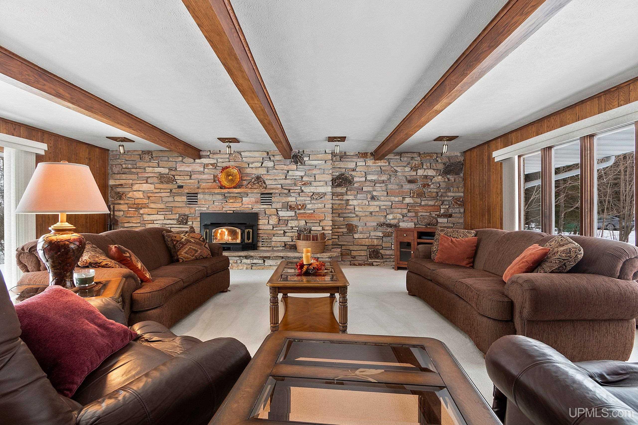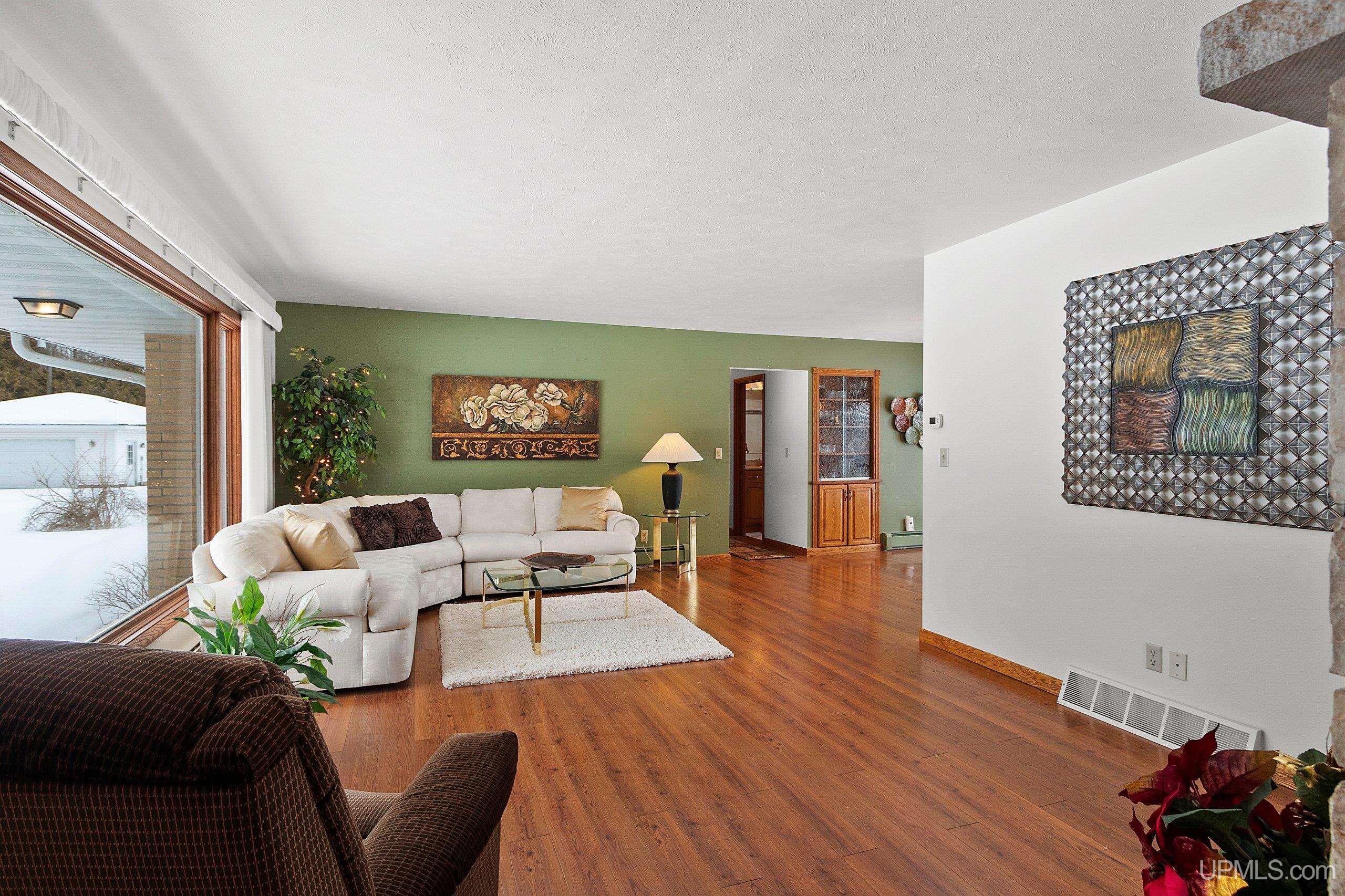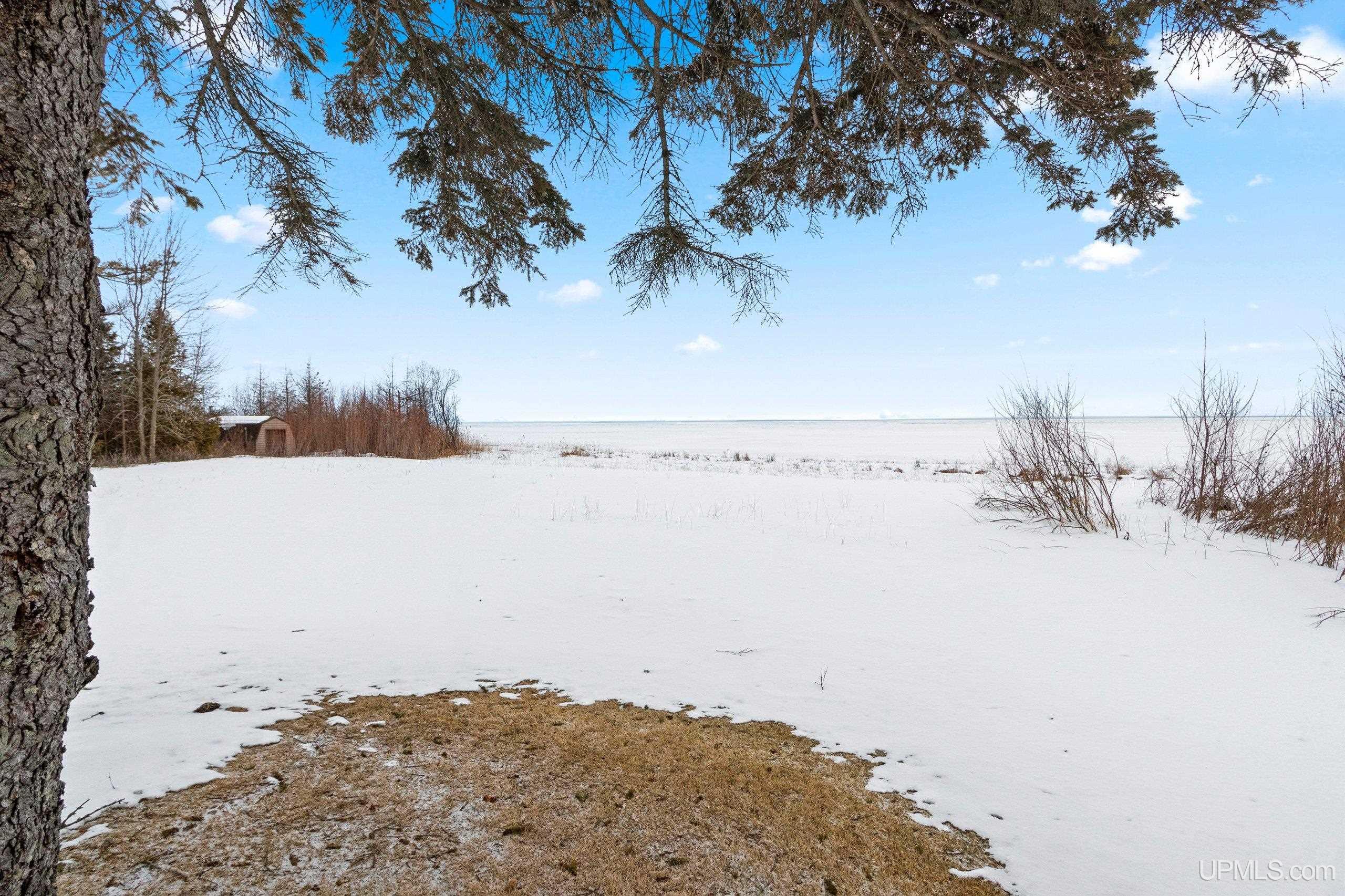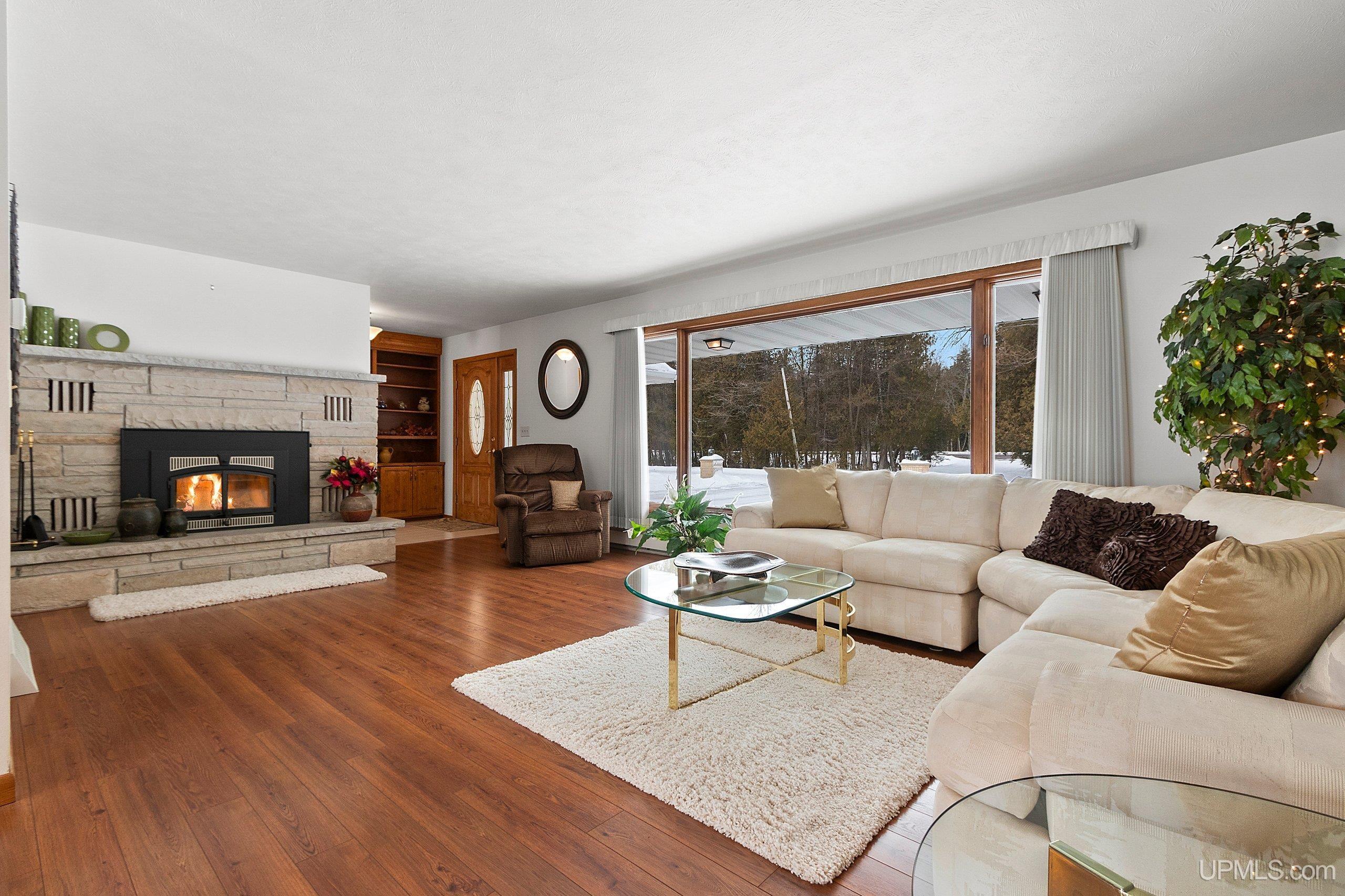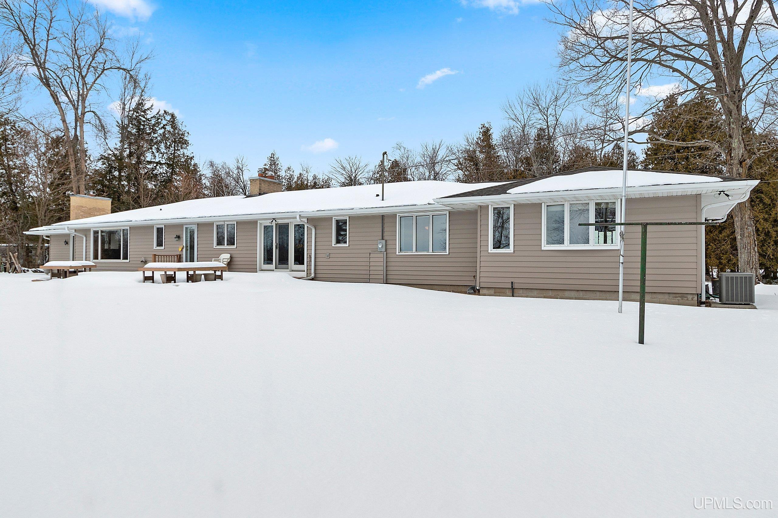 Spacious 2+ bedroom, 2.5 bath ranch offering approx. 2,600 sqft. of living space on just over 3 acres with 290 feet of Green Bay frontage. Set well back from the main road, this professionally maintained property delivers privacy, functionality, and beautiful water views. The home features a large primary suite with a soaking tub, dual vanities, and a walk-in closet. Enjoy both a living room and a separate family room, each with its own fireplace, along with a dedicated library/office. The family room offers flexibility and could be converted into additional bedrooms if desired. Quality kitchen cabinetry with granite countertops. The back deck offers an ideal place to relax while overlooking the bay. With a little work, the vegetated shoreline can be restored to its sandy beach. Additional features include a partial basement with dyke system, mound septic system new in 2023, roof replaced in 2019, Generac backup generator, attached 2-car garage, and an additional detached 2-car garage for extra storage. Conveniently located near Cedar River Marina, campgrounds, and year-round recreation, this waterfront property offers space, privacy, and opportunity. Priced under appraised value!