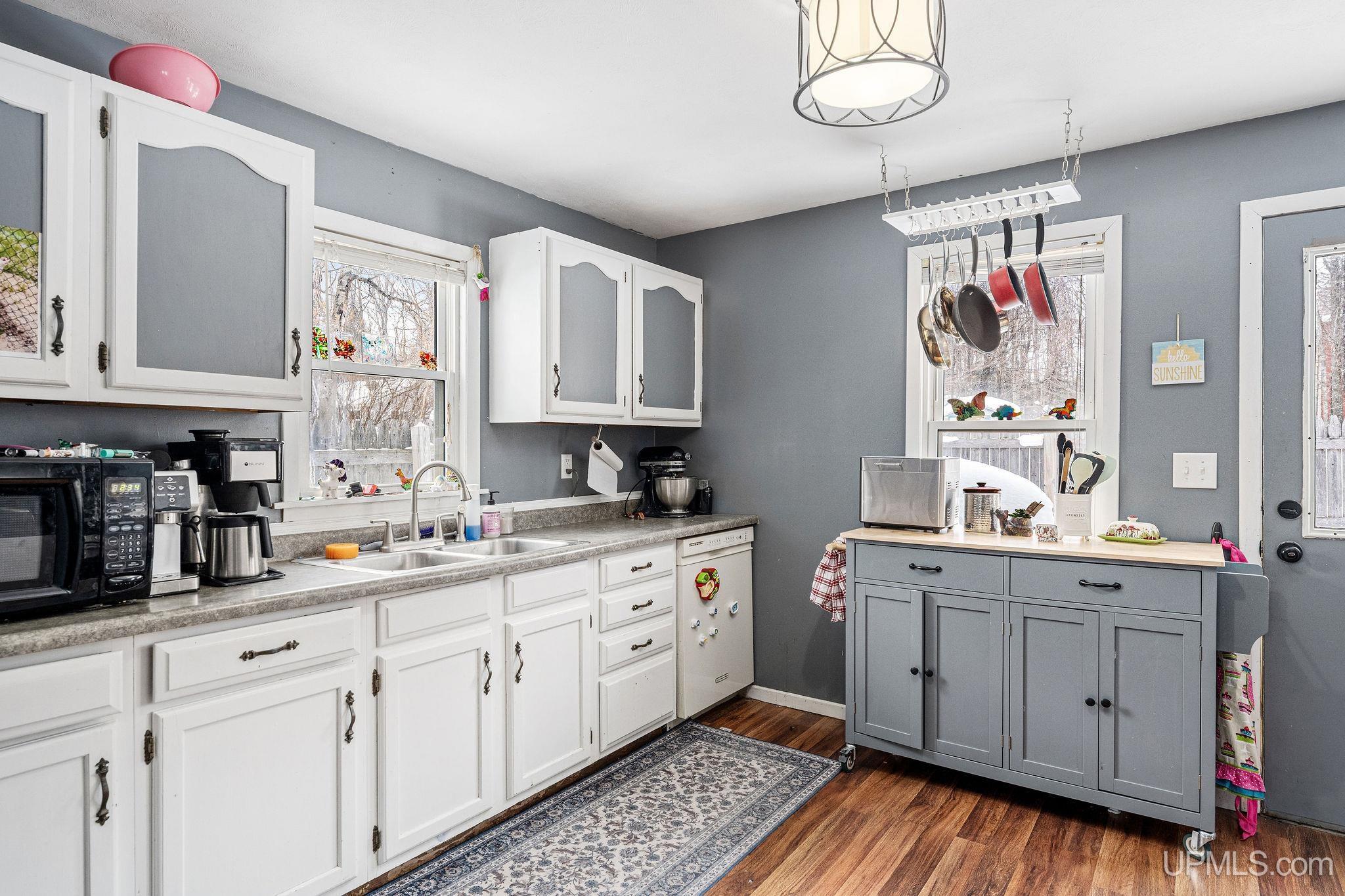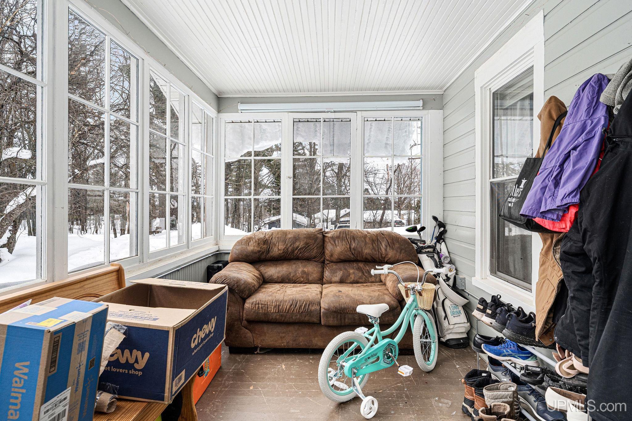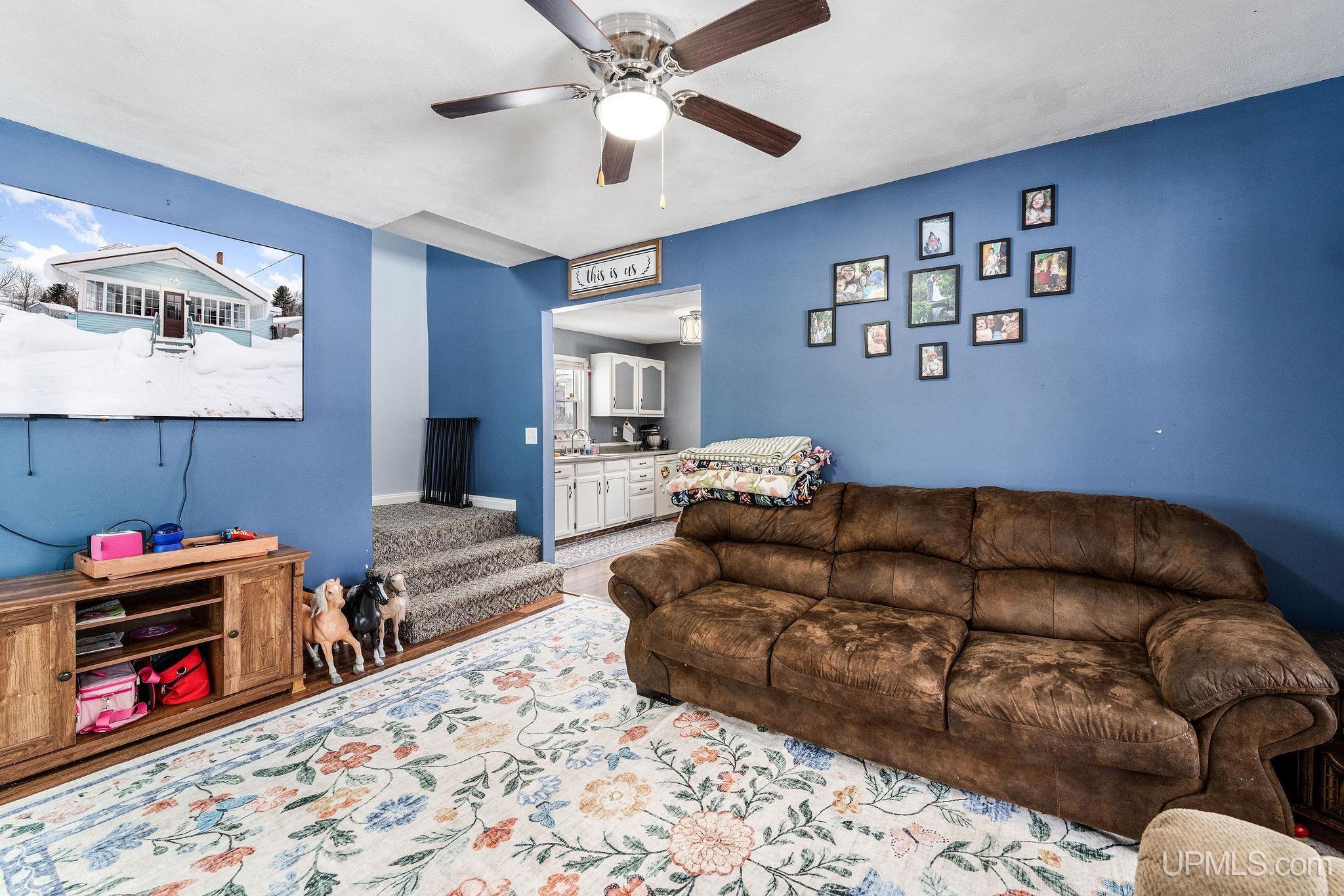 Located in a quiet pocket of Ishpeming Township, this 3 bedroom, 1.5 bath home offers a perfect blend of historic character and modern updates. The lot is a sprawling 0.56 acres with mature trees, lilac bushes, and a bearing apple tree. This outdoor space provides ample room for gardening, playset, or room for a future garage. Inside the first floor features an inviting, functional flow perfect for daily living. You’ll find a formal dining room, a cozy living room, and an open kitchen equipped with a large walk-in pantry. A convenient main-floor bedroom with an attached half-bath provides flexibility for a play room or a home office. Upstairs, two additional sizable bedrooms share a full bathroom. The full basement offers storage and laundry area. You can enjoy the beautiful yard from the large enclosed front porch or the side fenced area. There is additional cold storage in the large shed.