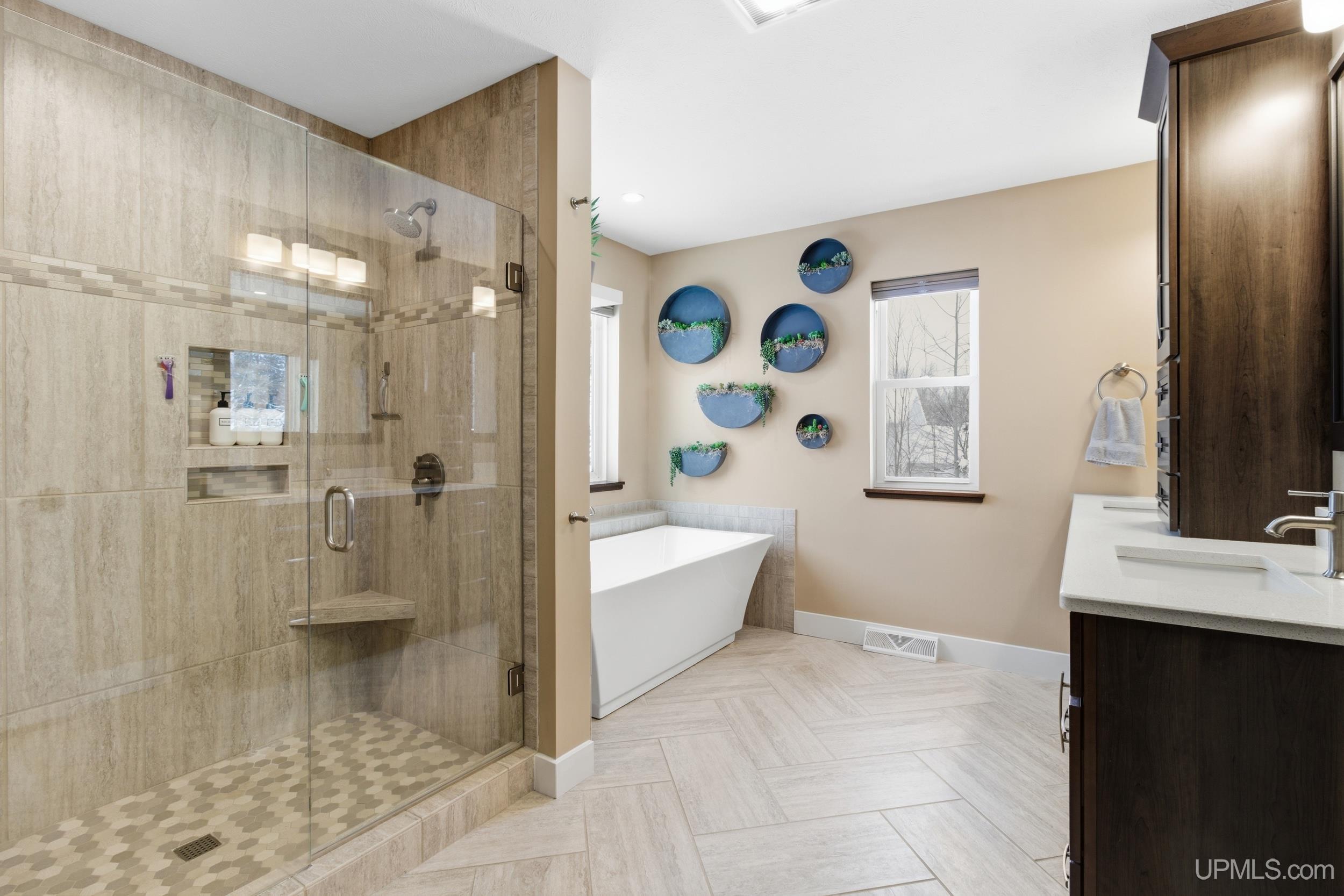 Welcome to your dream home at 633 Windcrest Dr. in the picturesque Harlow Farms conservation community of Marquette! This stunning 6-bedroom, 4.5-bath residence, built in 2016, offers a unique blend of luxury and comfort, nestled on over a third of an acre with a beautifully landscaped, fenced-in backyard. As you approach, the inviting front porch, 3 car garage and beautifully manicured lawn, all set the stage for what awaits inside. From the moment you walk in, you realize this home is special! The open concept living/dining/kitchen is sure to be the heart of the home! Work from home? This 4,604 finished sq ft, thoughtfully designed home features a spacious layout that includes a convenient office AND a built-in workspace on the stair landing! Gourmet Kitchen: A chef's paradise with ample cabinetry, granite countertops, modern appliances, huge pantry and a large island perfect for gatherings. Luxurious Living Spaces: Enjoy cozy evenings by the natural gas fireplace in the large living room, adorned with a stunning floor-to-ceiling flagstone design or entertain in the dining area with its dedicated wine bar and sliding doors to the back deck. Master Suite Retreat: The expansive master bedroom boasts a beautiful tray ceiling, a massive walk-in closet with convenient pass-through to the convenient second-floor laundry, and a spa-like master bath featuring a low-threshold custom tiled shower, a huge soaker tub, double sinks and in floor radiant heat. The other four bedrooms are ample in size, and each have walk in closets and two shared baths! Outdoor Oasis: The backyard is a haven for relaxation/entertainment, complete with a gazebo, Jacuzzi and playset—ideal for family fun or hosting guests. Finished Basement: The basement offers additional living space with a guest bedroom, full bath, storage room, rec room, and gym, all tastefully finished in 2020. You'll love the mudroom with in-floor radiant heat and custom cubby built-ins! Honestly the features of this home are too many to mention! Community Amenities: Living in Harlow Farms means embracing a lifestyle rich in nature/community. The conservation areas provide over 25 acres for wildlife and recreation, with hike and bike trails that connect to the Noquemanon and South Marquette trails. Community Center: A 2,200 sq ft facility and green space for resident events and gatherings. Convenient Access: Close to major roads, shopping, dining, and healthcare services, plus easy access to skiing, hiking, and water sports. This home has been meticulously crafted by the Sunrise Builders with the current owner's oversite and attention to detail, showcasing quality construction and high-end features like the upscaled central vacuum system and recirculating pump for constant on demand hot water. Don’t miss the opportunity to make this exquisite home your own. Experience the perfect blend of luxury, community, and nature at 633 Windcrest Dr.—where your dream lifestyle awaits! Schedule your tour today!