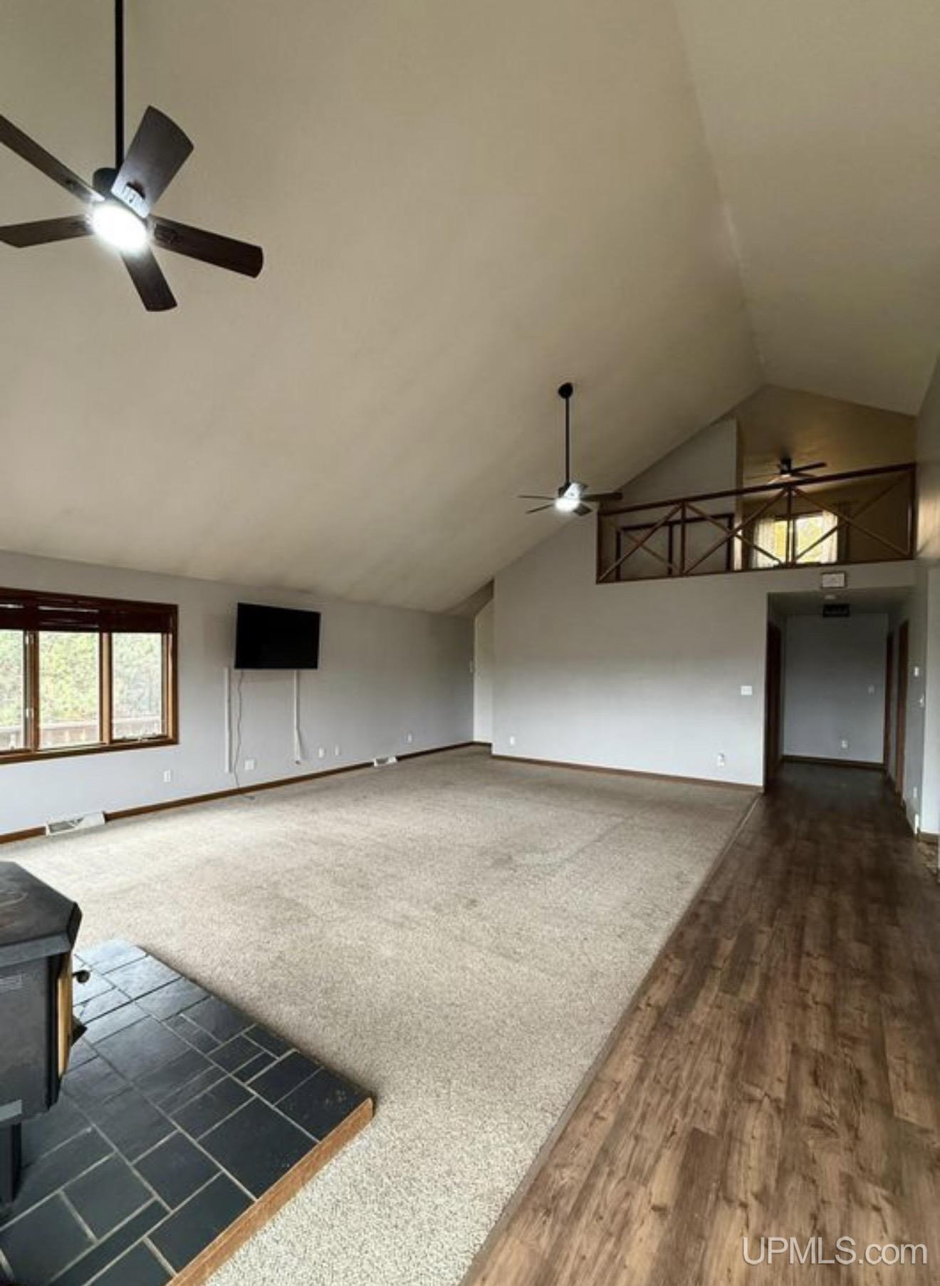 Looking for space and stunning views? This four-bedroom, two-bath home sits on over half an acre and even includes an additional lot across the driveway. Inside, you’ll find numerous updates throughout, including modern light fixtures and fans, a recently remodeled bathroom, a newer furnace, updated home and garage roofs, and a refinished deck. The living room offers a warm and inviting atmosphere with vaulted ceilings and a charming free-standing fireplace — perfect for cozy evenings. Zoned heating adds comfort and efficiency. The walk-out basement expands your living space with a private bedroom featuring two walk-in closets and an en-suite bath with in-floor heating, along with a spacious rec room and ample storage. Outside, enjoy picturesque views, a two-car garage with a wood-burning stove, an invisible dog fence, and even a root cellar. Listed below appraised value.
