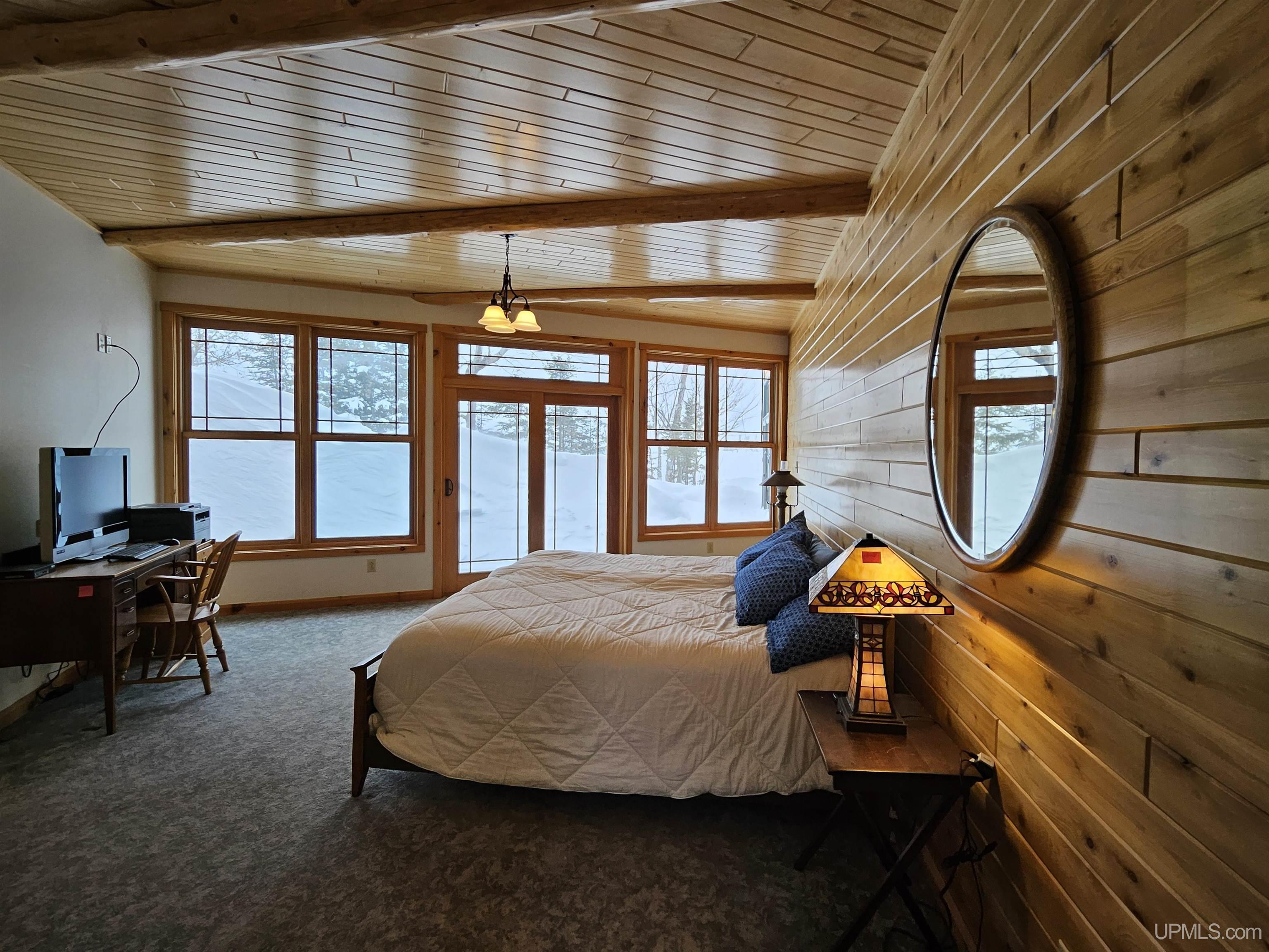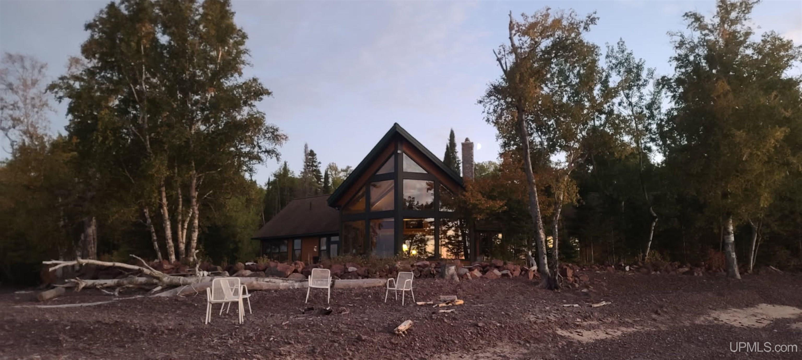 Eagle Isle is a special place. Built in 2007 in one of the world's most stunning settings on the shore of majestic Lake Superior. The beach provides amazing agates, and you’ll own the small island offshore. In the house, the open concept design flows between the magnificent great room, well-appointed kitchen, and dining area. Floor-to-ceiling windows in the great room take advantage of gorgeous lake views, sunsets, and passing freighters. A stone fireplace adds texture and warmth to the setting. The timbers were harvested from the property. A spiral staircase takes you to a loft overlooking the great room and shares the amazing lake views. This is a great place for a family room or your home office. A bedroom and ½ bath round out the upper floor. The main floor features a primary ensuite bedroom with large windows capturing the lake views, French doors leading to a patio, and a large walk-in closet. The primary bathroom features a spacious, ceramic walk-in multi-shower system, dual sinks, and plenty of storage. In the opposite wing, you’ll find another comfortable corner bedroom with built-in storage and a full bath with a jetted tub and laundry facilities. The oversized, attached 2-car garage has in-floor heat and contains a workshop, wood stove, and the mechanical room. Above the garage is storage space with a dumbwaiter to carry your boxes for you! Outside, the concrete patio leads the way to your secluded beach. The property has over 6 acres with some land across the highway. The house is set off the road and is in a private setting. There is a small, heated guest cottage with a ¾ bath, water heater, electricity, and an additional 1-car garage. There is an outdoor wood boiler with a nearby woodshed, a whole-house propane generator, and a 6x6 shed. There are sewer, water, and electric hookups for an RV. This is a rare opportunity to live the good life on Lake Superior. The beauty and serenity will take your breath away.