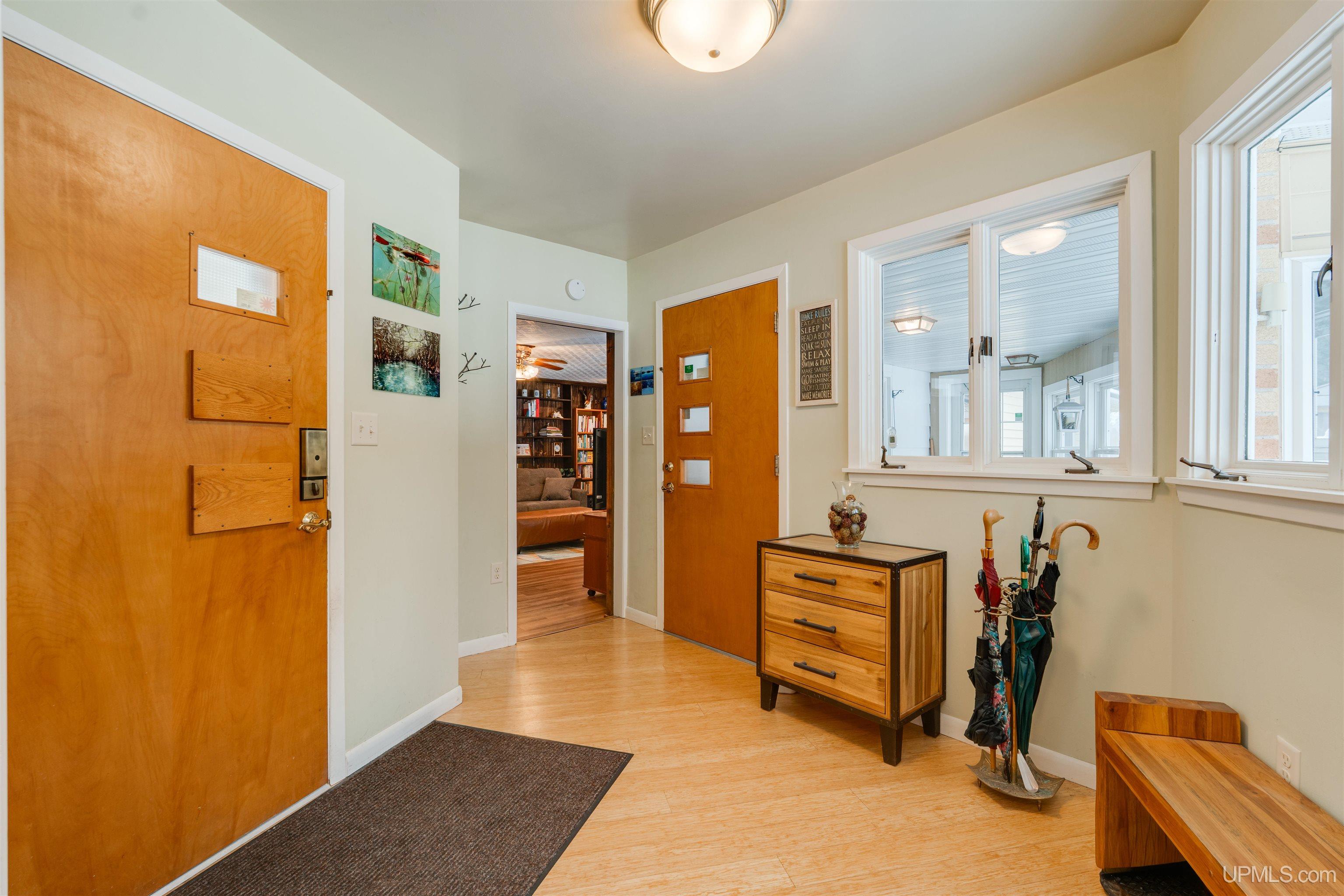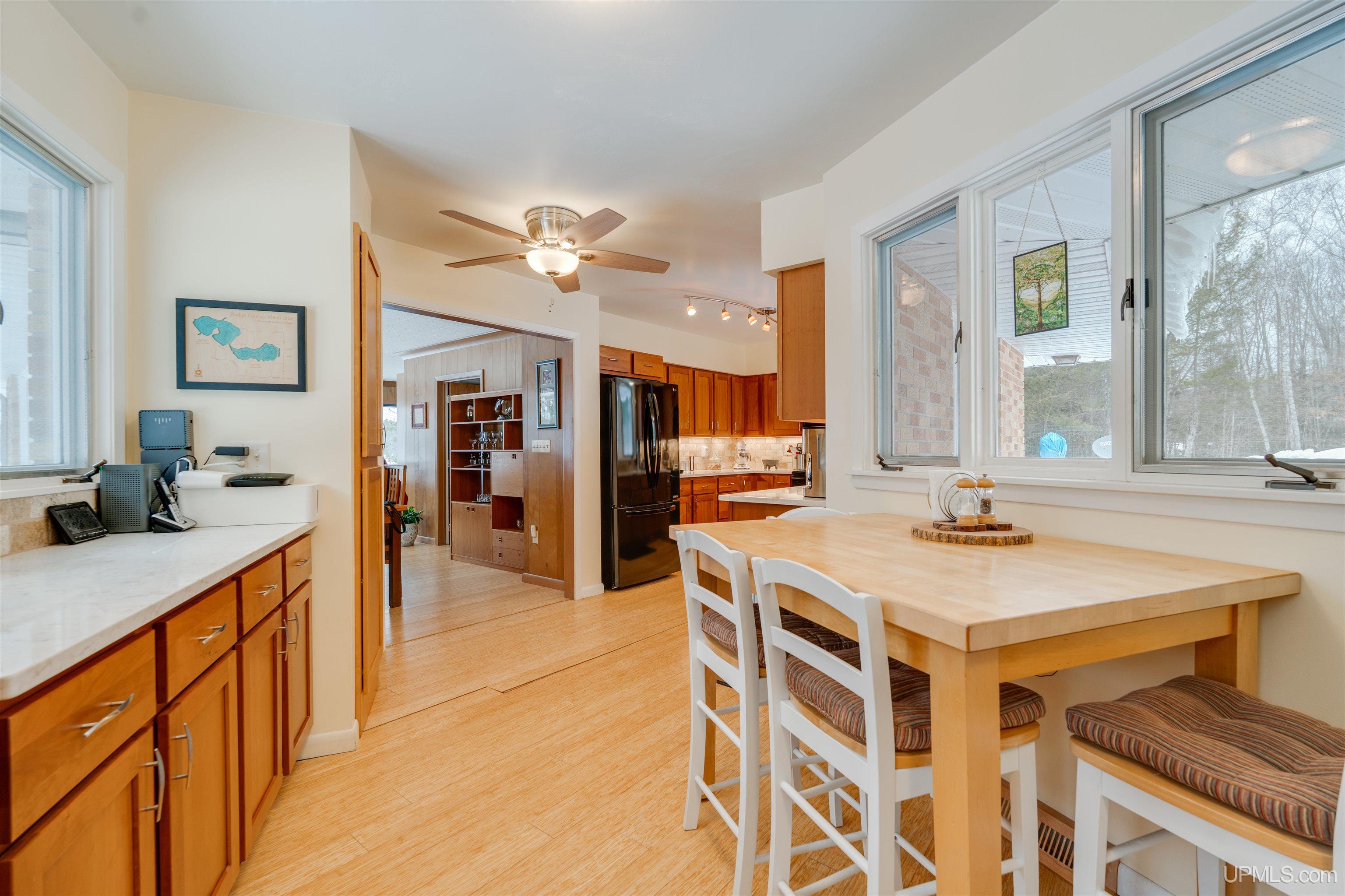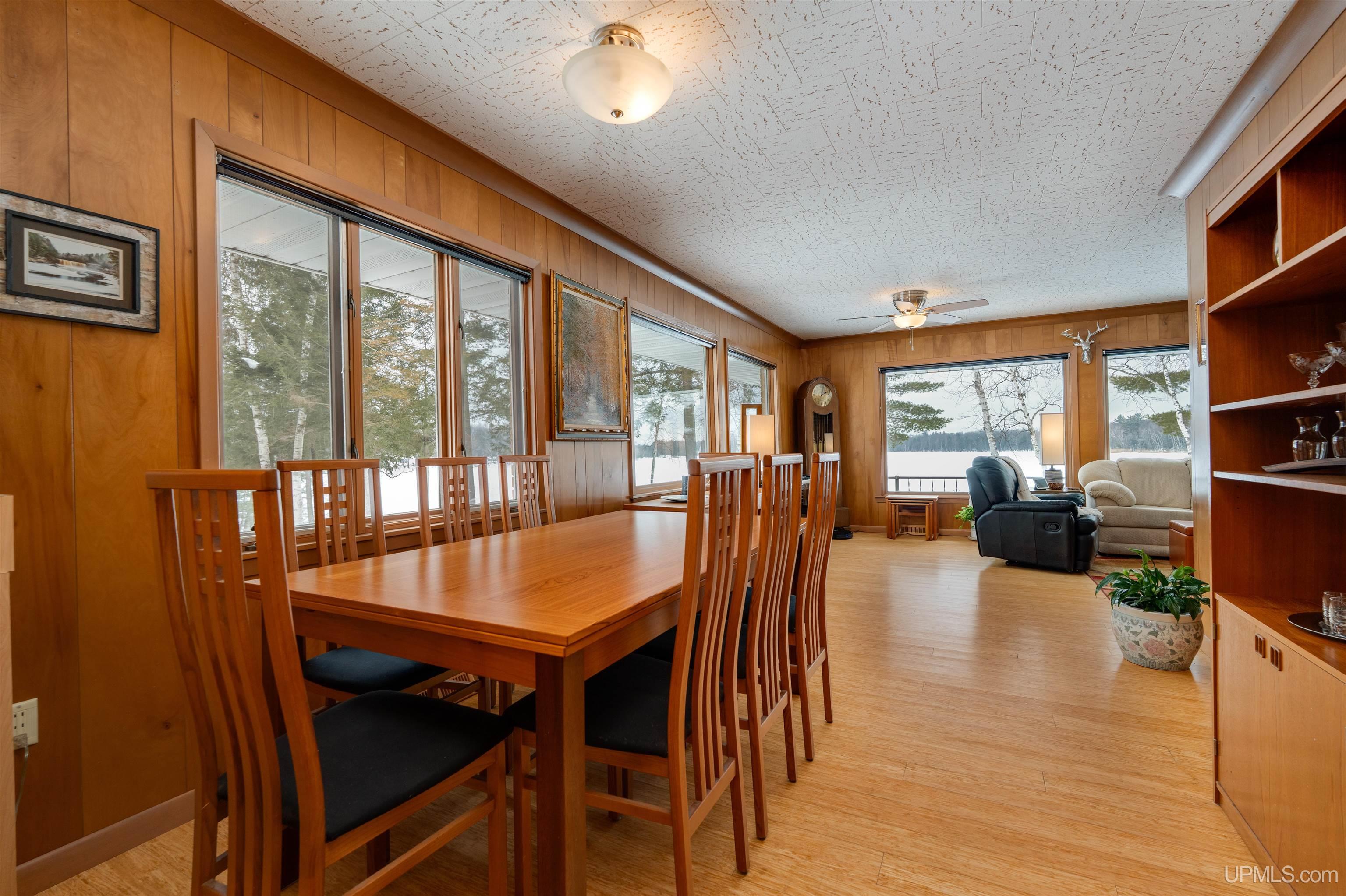 Set on 8.9 private acres with an extraordinary 467' of frontage on 105-acre Island Lake, this home offers a rare level of seclusion and natural beauty seldom found in today’s market. Positioned on the desirable east end of the lake, the property captures breathtaking west-facing sunsets across pristine waters that reach depths of approximately 60 feet and connect by channel to Dodge Lake — providing access to two exceptional inland lakes. The 2,492 sq ft residence has been meticulously maintained and thoughtfully updated, blending comfort with timeless Northwoods character. The kitchen is fully renovated with rich cherry cabinetry, granite countertops, and a tile backsplash, opening into bright living and dining spaces framed by expansive lake-facing windows. An impressive addition includes a generous bedroom suite, custom tile shower bath, laundry area, partial basement, and a large den — creating flexible living space ideal for guests or extended stays. Mature hardwoods provide privacy throughout the property, while evergreen shoreline plantings frame the water’s edge. Two detached garages offer abundant storage for vehicles, watercraft, and recreational equipment. A large, insulated workshop stores your tools and gives you lots of workspace. Propane forced-air heat, electric baseboard backup, and a durable metal roof ensure four-season comfort and peace of mind. Located just 15 minutes from Manistique, and surrounded by thousands of acres of public land, trails, lakes, and streams, this property delivers a true Upper Peninsula lifestyle — private, refined, and connected to nature. A rare opportunity for those seeking space, water, and enduring value in Michigan’s Northwoods.