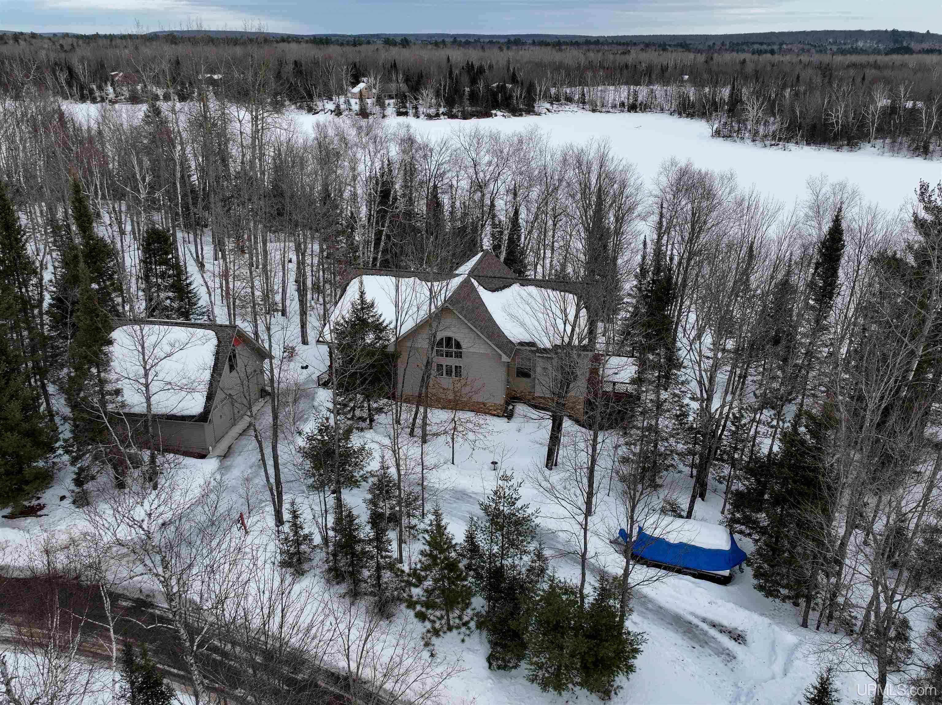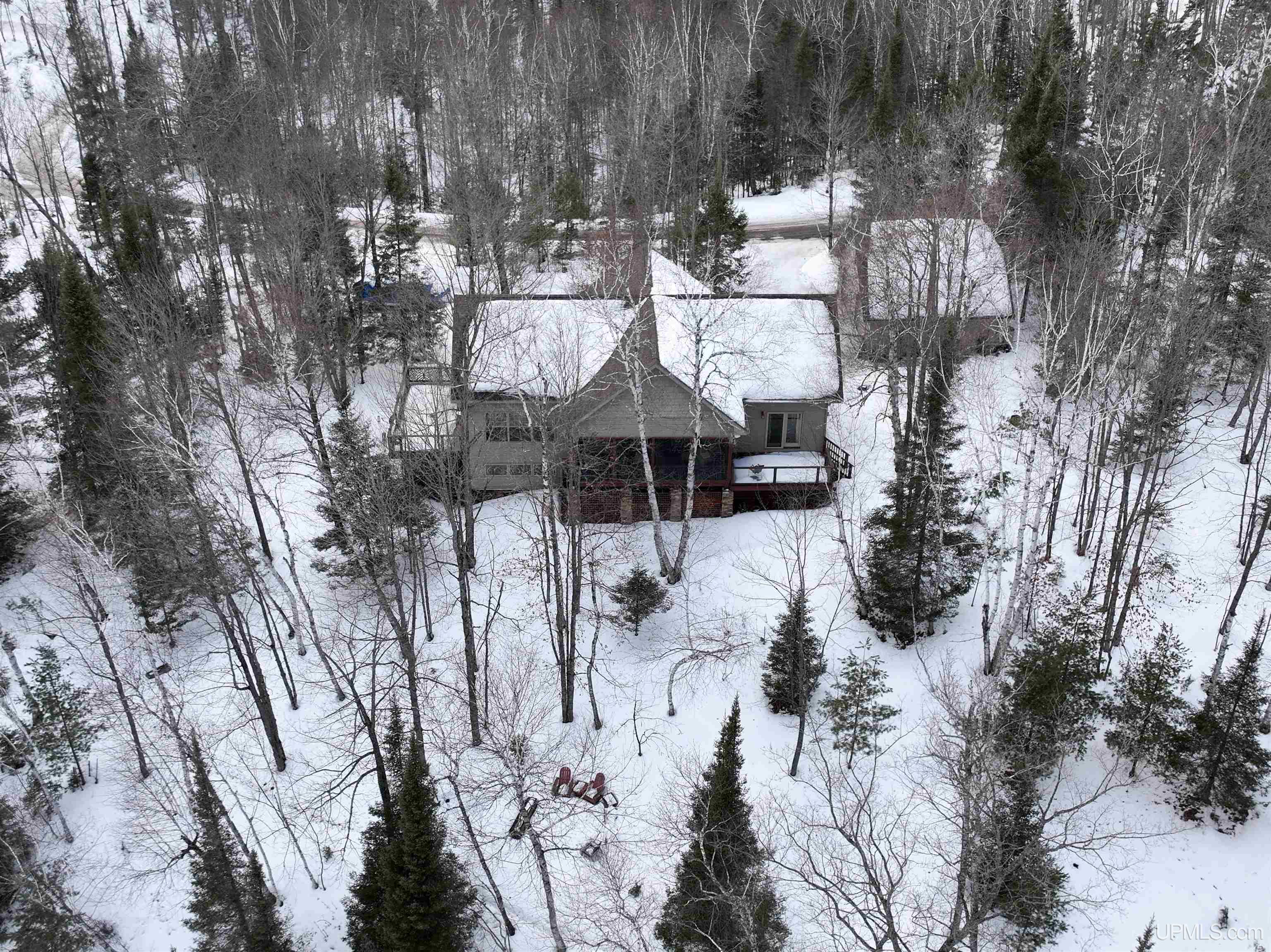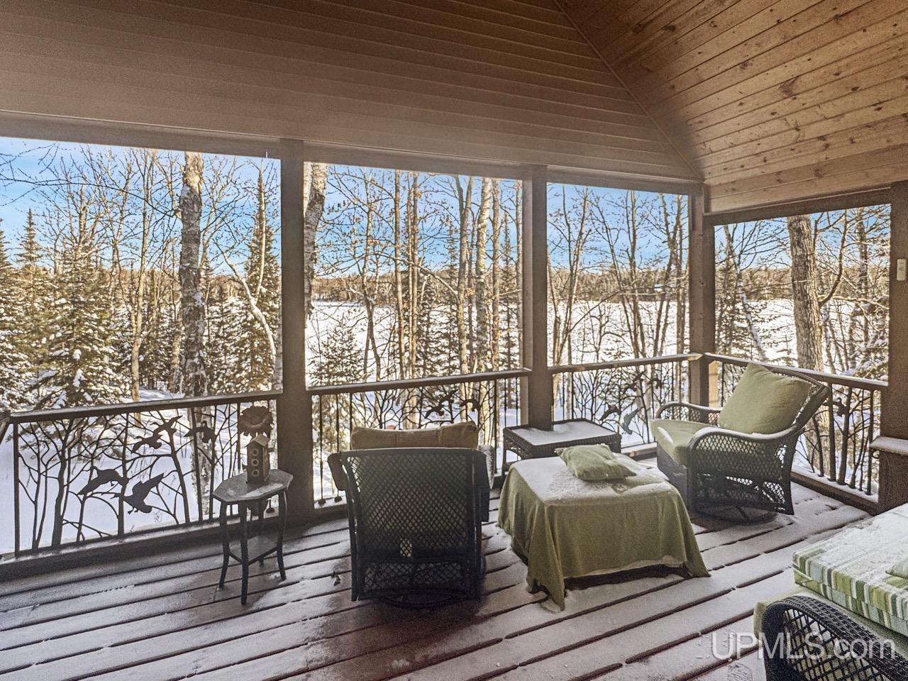 Welcome to your private lakeside retreat — where silence, stillness, and the tranquility of the lake set the tone for everyday living or your Northwoods getaway. This stunning 3-bedroom, 2-bathroom home with over 200 feet of frontage on Maggie Lake offers exceptional craftsmanship and thoughtful design throughout. The main floor features a naturally bright, open concept layout, a cozy loft-style reading nook, and a spacious primary suite with attached bath. Attention to detail is evident from the beautifully designed interior to the custom railings that wrap the expansive decking. Step out onto the screened-in 20-ft porch — the perfect place to enjoy peaceful mornings and serene lake views, and to watch and listen to loons and their babies glide by in the calm waters. The walkout lower level provides incredible flexibility with a second living area, kitchenette, laundry and 2 additional bedrooms — ideal for entertaining or extended stays for company. Enjoy evening fires beside the natural fire pit or throw in your kayak for an evening stroll. Lake life begins immediately with the included dock, pontoon, and most major furnishings staying with the the home. Additional highlights include an engineered wall of windows for structural integrity, a detached 2-car garage with bonus space above, and a backup manual generator for peace of mind. Conveniently located just minutes from Young’s Golf Course & restaurant, Ski Brule and the Alpha Brewery along with nearby bike trails and rec trails. This property offers the perfect balance of private lakefront living with nearby recreation and local favorites.