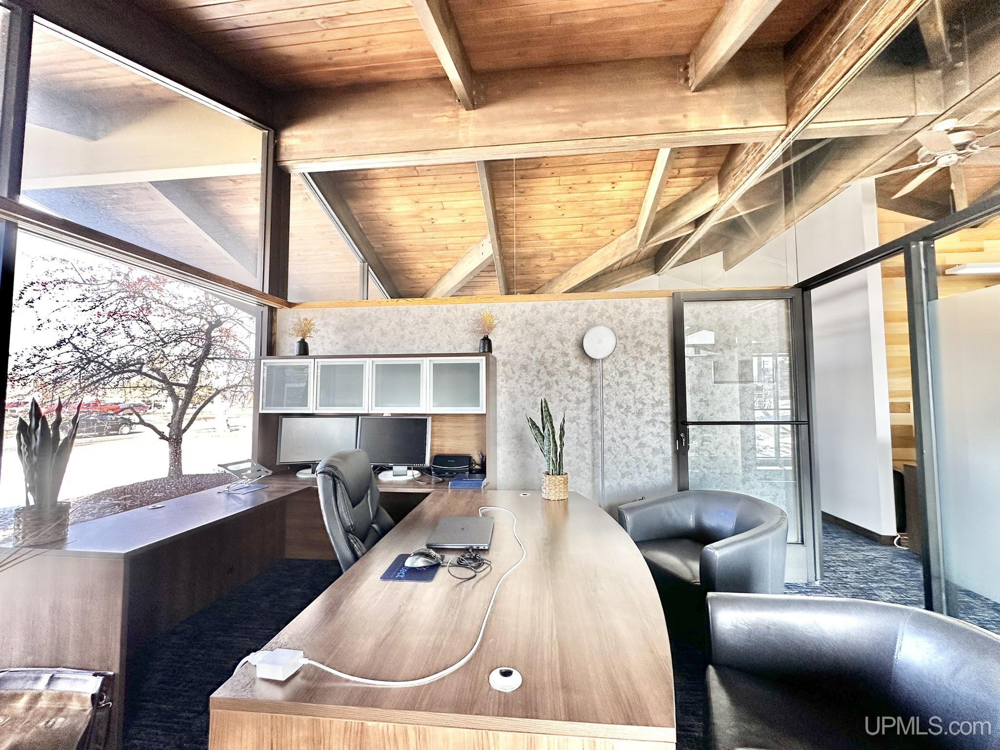 Positioned on a high-visibility corner lot with a stoplight, this beautiful architectural building offers exceptional exposure in a thriving area of Iron Mountain and Kingsford. With strong traffic flow and excellent accessibility, this location is ideal for a growing business or investment opportunity. The office space has been thoughtfully and conveniently updated, featuring sleek glass interior walls that allow natural light to flow effortlessly throughout the building?creating a bright, modern and welcoming work environment. A spacious conference room provides the perfect setting for meetings and presentations, while well-appointed bathrooms and a dedicated breakroom area add everyday comfort and functionality for staff and clients alike. The exterior is just as impressive, with attractive landscaping, sidewalks, and ample on-site parking to accommodate employees and visitors with ease. Located only minutes from Ford Airport with commercial service through Delta Air Lines, convenience for traveling professionals and clients is an added bonus. Whether you?re looking to purchase for your own business headquarters or invest in a property with dependable, established renters already in place, this prime commercial opportunity offers location, style, and long-term potential all in one.