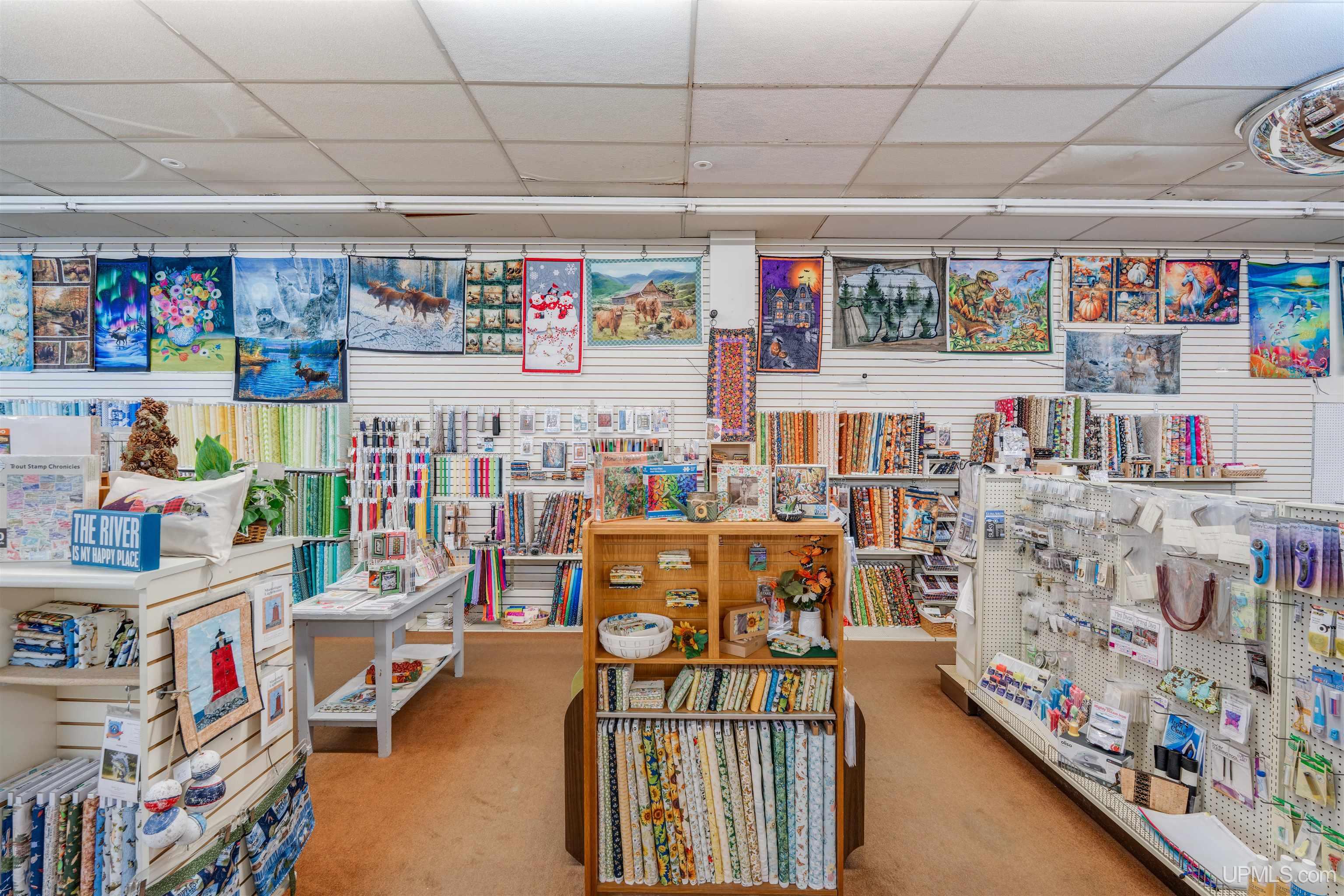 Located in the heart of downtown Manistique in a high-visibility storefront directly across from the Lake Effect Arts Center and surrounded by popular shops, restaurants, and local gathering spots, this cherished business has been a mainstay in the community for years. Convenient parking is available with curbside spaces along Cedar Street as well as a municipal lot directly behind the building, and the property features both front and rear entrances for easy customer access. This well-maintained building features over 6,000 square feet of interior space (+ full basement) and houses a popular craft and fabric store along with a full-service flower shop. The Ben Franklin portion offers a wide variety of merchandise alongside the fabric and craft offerings, while the Flower Shop further diversifies the business with a selection of plants, décor, and of course the beautiful and fragrant bouquets that can be made to order or chosen directly from the walk-in floral cooler. The building benefits from an updated high-efficiency forced-air furnace, keeping the interior toasty warm even through the winter months. The roof has also been replaced, providing peace of mind and low maintenance for years to come. Many historic features remain, including the cast iron support beams and the original tin ceiling (intact beneath the drop ceiling on the main floor and still visible in the basement). The interior store area is completely open, providing maximum flexibility for retail layout and merchandising. In addition, the full basement provides abundant space for storage or additional operational needs. Those seeking a reputable turnkey business will surely want to consider this unique opportunity. Craft, flowers, and charm all under one historic roof.