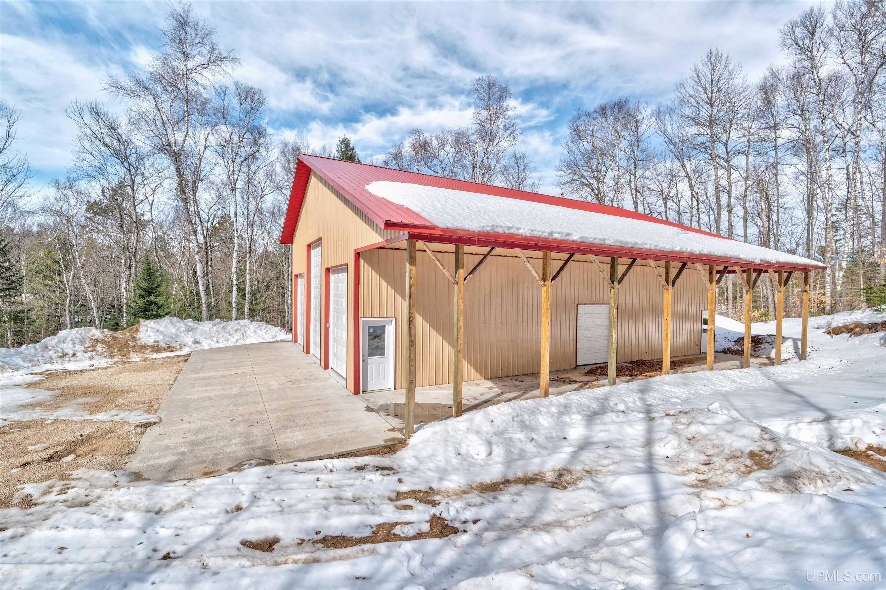 Build your dream home or cabin amongst the hardwoods on this 1.28 acre property featuring a custom designed 40x60 pole barn built in 2021 by Amish craftsmen. The building is thoughtfully constructed with 18 foot sidewalls and multiple oversized doors, making it ideal for storing RVs, boats, equipment, or creating a future barndominium. The front of the barn features three large overhead doors with high lift openers that extend the track for maximum clearance including a 16x10 door that is perfect for RV storage along with two 12x10 doors for additional vehicles or equipment. A 12 foot concrete lean-to provides extra covered space and includes an 8x8 side door for convenient access. The interior layout was intentionally designed to accommodate future living space. The structure allows for construction of a second story in the rear portion with a cathedral ceiling for those who may want to finish the space as a loft, guest suite, office, or additional living area. Scissor trusses were installed in the rear section of the building to create the necessary ceiling height and open span, making it easier to frame and complete a comfortable finished space without major structural modifications. The property also includes nearby deeded access to Thunder Lake, a beautiful spring fed 360 acre lake known for excellent fishing including Walleye, Bluegill, Bass, and Pike. A public boat launch is nearby for easy lake access. Outdoor enthusiasts will appreciate being in the heart of the Hiawatha National Forest and endless trails for hiking, hunting, ATV riding, and exploring. The area offers some of the best ATV and snowmobile trails the UP has to offer! Conveniently located midway between Manistique and Munising, this property offers the perfect base for enjoying Michigan’s Upper Peninsula whether you are planning a full time home, vacation cabin, or recreational getaway. You will also have plenty of room to spread out with 460' of road frontage.
