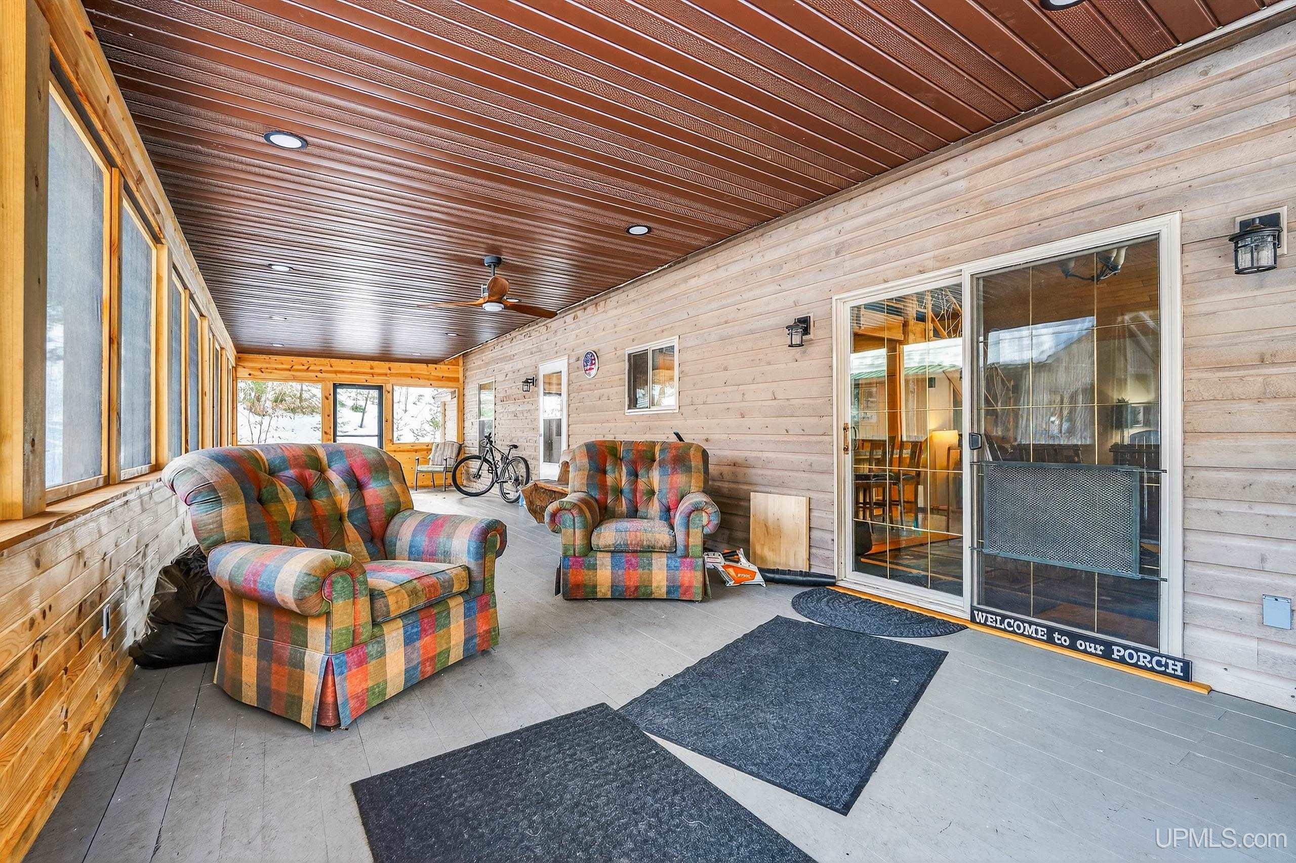 Adventure starts here. One look at a plat map and you will see this property is smack dab in the heart of the Hiawatha National Forest, surrounded by the incredible recreation the Upper Peninsula is known for. This 3 bedroom, 1.5 bath home sits just across the road from beautiful Thunder Lake and offers easy access to more than 400,000 acres of national forest, hundreds of lakes, trout streams, and extensive ATV and snowmobile trails that are some of the best the UP has to offer. The home is located in a quiet area of well kept homes and cottages and enjoys shared access to Thunder Lake at the edge of the lot via a private lane used by only a few nearby owners. Thunder Lake is a 360 acre spring fed lake known for its clear water, hard sand bottom, and excellent fishing for walleye, bass, bluegill, and northern pike. A convenient public boat launch makes getting on the water easy. Inside, the home features a comfortable open layout filled with natural light and highlighted by cathedral ceilings that create a bright and airy feel. The living room, dining area, and kitchen flow together to form a welcoming gathering space. Hardwood floors add warmth and character throughout much of the main level. Two bedrooms are located on the first floor while the second level features a huge private en-suite complete with a half bath. One of the most enjoyable features of the home is the spacious enclosed porch, which is brand new and provides a wonderful place to relax, entertain, or enjoy peaceful mornings and evenings near the lake. High speed fiber internet is available, allowing you to stay connected while enjoying the quiet of the forest. A detached two car garage offers plenty of space for vehicles, boats, and recreational equipment and is both insulated and heated. Recent updates include a new furnace and central air system installed in 2024 along with the entire exterior freshly stained and sealed in 2024. Located roughly midway between Munising and Manistique, this property offers an ideal base camp for exploring everything the Upper Peninsula has to offer. To make this opportunity even more appealing, the property includes an assumable mortgage with an incredibly low interest rate of 2.6 percent on the existing balance. While additional financing would likely be needed to complete the purchase, assuming this low rate portion could significantly reduce the overall cost of borrowing. If you are looking for a great getaway in a national forest setting with outstanding access to outdoor recreation, this Thunder Lake property is it!