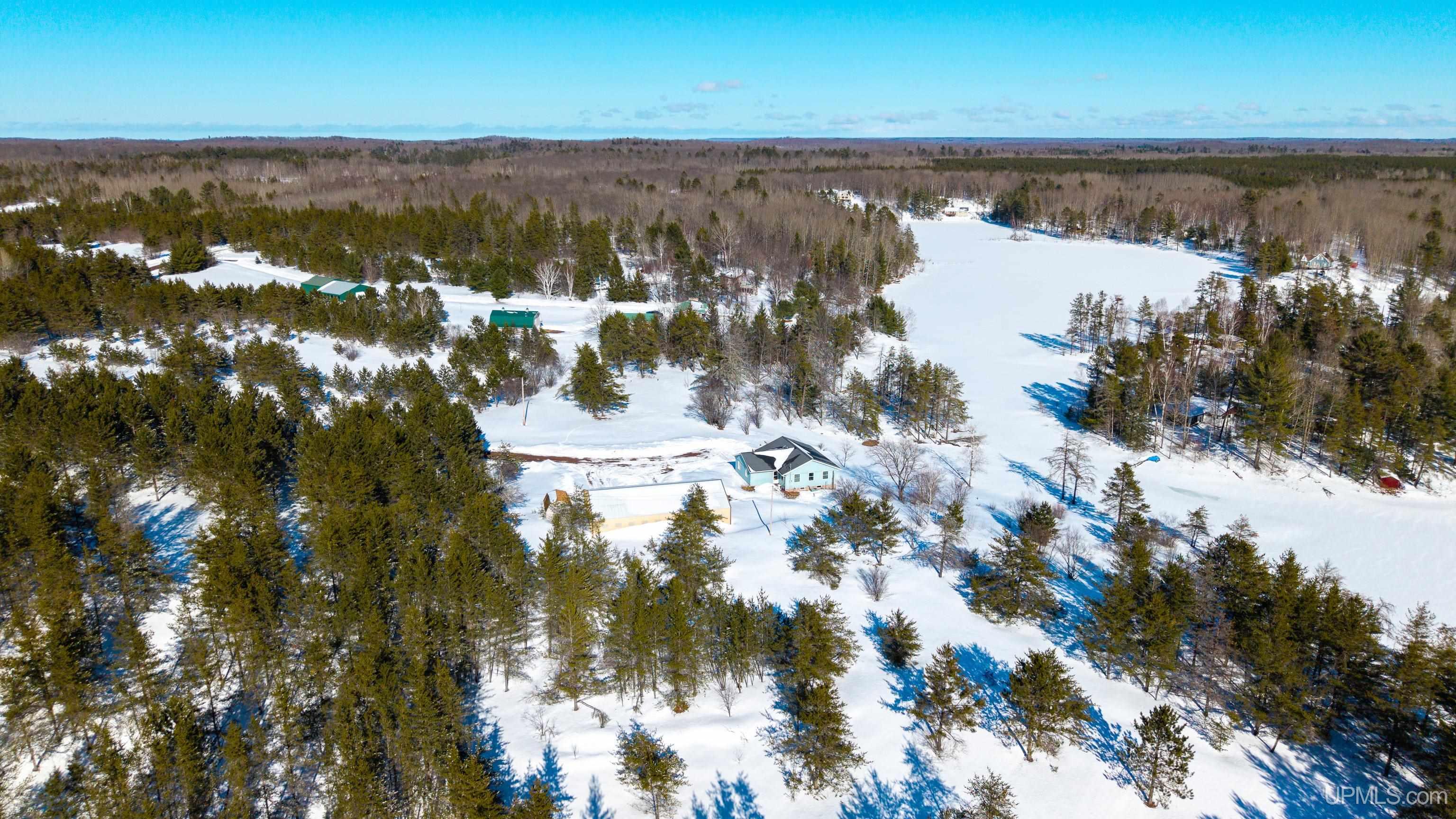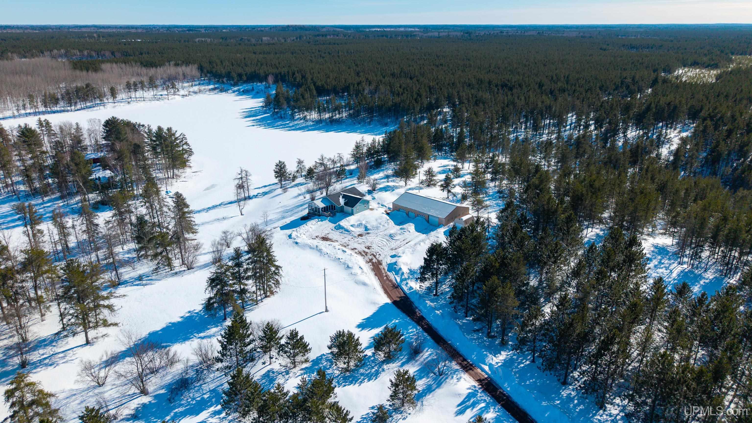 Welcome to your private retreat with endless possibilities! Whether you want to raise livestock, enjoy fishing right in your front yard, or simply relax surrounded by nature, this property offers it all. Situated on over 10 acres, this 4–5 bedroom, 3 bathroom home provides the perfect blend of comfort and natural beauty. Martin Lake creates a peaceful waterfront setting where you can enjoy fishing for largemouth bass, pike, and bluegill, along with countless recreational opportunities. The home features panoramic lake views from the three-season room or Trex deck, offering the perfect place to relax and take in the scenery. The kitchen was remodeled by Schwalbach Kitchen Specialists and features beautiful alder wood cabinetry, Corian countertops, and an undermount sink. Additional amenities include a full-house generator, central air conditioning, and 200-amp electrical service. The partially finished walk-out basement adds even more living space with an additional living room/entertainment area, third bathroom, office, and bonus room, making it an ideal level for a guest suite. Outdoors, the property truly is amazing with 10.73 acres featuring strawberry and blueberry patches, established perennials, and plenty of room for gardens or expansion. A massive 60' x 40' pole barn with four doors provides abundant space for vehicles, equipment, and recreational gear. One oversized door is tall enough to accommodate large vehicles or an RV. There is an attached garage for convenience too. Surrounded by the natural beauty of the area, the property attracts a wide variety of wildlife and places you in the heart of year-round Upper Peninsula adventure. Enjoy opportunities to fish, hike, bike, snowmobile, and trail ride—something for every season. Schedule your showing today and experience this exceptional waterfront home with acreage! Note: Home is year-round access-Road which is cleared by the county. Taxes will change upon sale and are not zero. Measurements are estimated based on reliable sources. All offers will be reviewed on 3/25/2026 at 12 noon EST with a 24 hour reply time. Thank you-