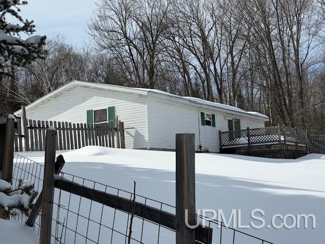Escape to the peace and beauty of country living with this 3-bedroom, 2 full bath ranch home set on a scenic one-acre wooded lot. The home features a spacious open-concept living/kitchen/dining area, creating a bright space for everyday living. The primary bedroom and full bath are located on one side of the home, while two additional bedrooms and a second full bath sit on the opposite side, offering privacy and a practical layout. A laundry area located just off the kitchen adds to the home’s functional single-level living. Sliding glass doors lead to a deck overlooking the fenced back yard. Outside, the added storage and workspace provided by the 2-car garage and large shed, gives you plenty of room for vehicles, tools, and recreational gear. Located on a quiet, year-round country road, you’ll be within one mile of State of Michigan land and snowmobile trails, providing easy access to miles of recreation right from your doorstep. Stager Lake Park is just down the road, offering opportunities for boating, fishing, swimming, and picnicking, and the area is surrounded by numerous lakes, rivers, and streams. Whether you're looking for a full-time residence, weekend getaway, or basecamp for outdoor adventure, this property offers a blend of comfort, privacy, and access to the Northwoods lifestyle.