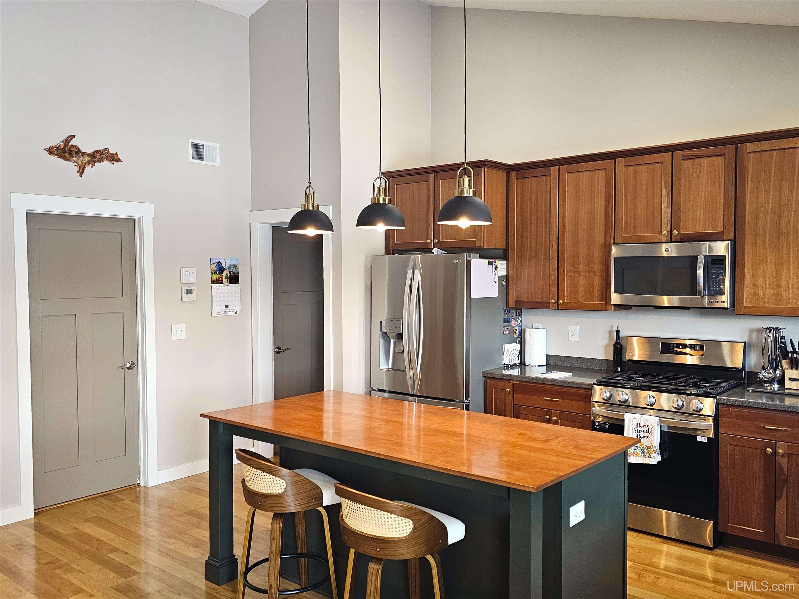 This beautiful 4-bedroom, 3-bath home blends country living with the convenience of being only minutes from Houghton. Step inside to be greeted by the open-concept layout that effortlessly connects the living, dining, and kitchen areas, making it perfect for entertaining. The vaulted ceilings and central fireplace provide cozy evenings with family and friends. The well-equipped kitchen features custom solid surface countertops, a functional center island, and ample storage space. The spacious primary bedroom includes a large walk-in closet and an en-suite bathroom that features a jet tub, double vanity, and a separate shower. The fully finished walkout basement offers additional living space. A fourth bedroom features a cozy sitting area, a sizable walk-in closet, and a full bathroom, providing privacy and comfort for guests. Step outside onto the covered deck that overlooks your expansive backyard, where you’ll find apple trees and serene walking trails waiting to be explored. Newly installed carpeting throughout the home gives it a fresh feel, while the main floor laundry adds convenience to your daily routine. The desirable 2-car attached garage offers easy access and additional storage. Take relaxation to the next level with your very own outdoor sauna, built in 2024 – a perfect place to unwind after a long day. NOTICE: Information is believed accurate but not guaranteed. Buyers must inspect & verify all property details. Buyers accept all risks of inaccuracies, including but not limited to, acreage, lot size/location, square footage, & utility availability/costs. Real estate taxes will be reassessed & may change significantly after sale; do not assume your tax bills will match the seller’s. Taxes are not zero. GIS, apps and plat book pages/maps are not surveys. OFFERS: Please allow 72 hours for a response. Seller may set or change offer deadlines at any time with or without notice.