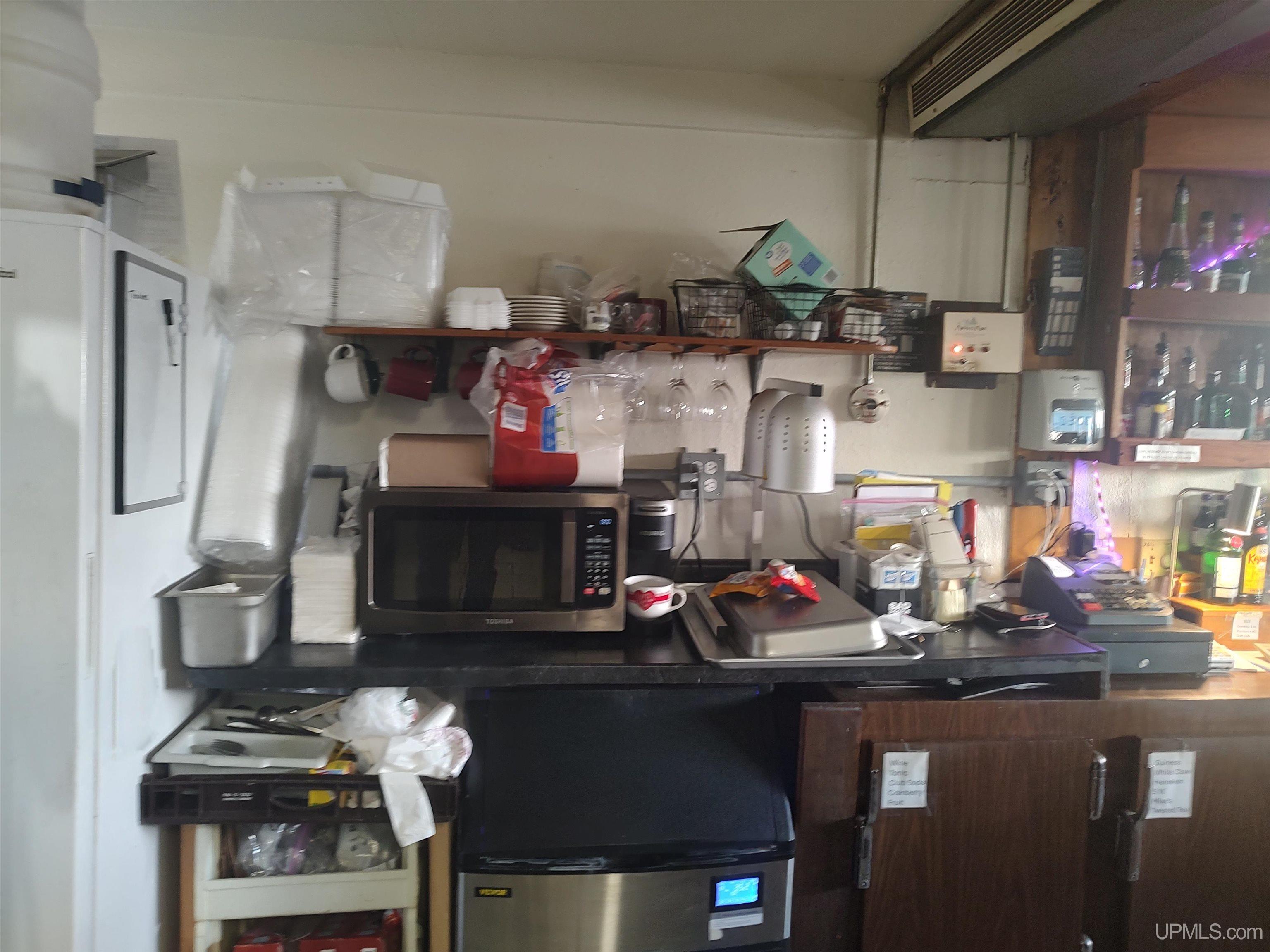 The Bear?s Den Bar currently open to the public, provides a welcoming spot for good food, drinks, and conversation after a day on the lake or trail. - Set on the Highway 41 thoroughfare this Bar/Restaurant has the only liquor license in Baraga County's Spurr Township! There is a groomed snowmobile trail to the front door so there is great tourist, snowmobile and local trade. Food and drinks are available, as well as Take Out. There is plenty of room to expand the existing building. The current Serving Area is 14x22, the Bar Area is 10x14, the Kitchen area is 10x19, the Men's Bathroom is 5x10 and the Women's Bathroom is 7x10. The well and septic system would support a larger seating capacity. The partially wooded 4.14 acre property with high visibility highway frontage, and with commercial/industrial zoning, there would be the ability to expand services by building seasonal Rental Cabins, an RV Park, etc. The restaurant/tavern is within walking distance of three motels. Great tourist and snowmobile trade, along with ever loyal locals make this a great place to own and operate.
