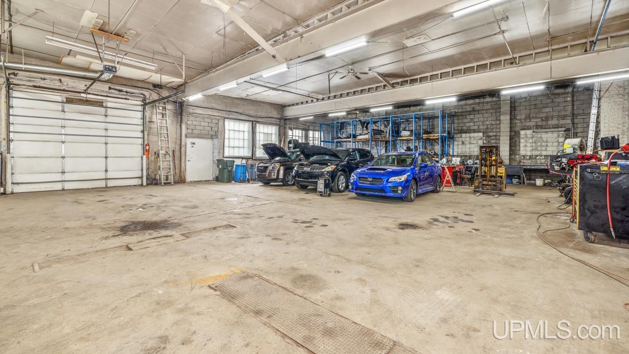 This building is on the best corner in Escanaba, Stephenson and Ludington. The building holds two businesses, La Cantina Mexican restaurant and Novak's used car sales and repair shop. The restaurant is staying, they pay $3200 a month plus all their utilities and would like to sign a long term lease. The repair shop and used car sales will be leaving, but are leaving a car hoist, huge air compressor and tire racks. The restaurant has their separate heating and cooling systems while the garage has a natural gas heater as well as a wood furnace. There's an office and bathroom in the garage. There's also 2 lots across the alley that go with this sale. The roof over the restaurant was replaced in 2025, a rubberized sealing that cost 40,000. The repair shop and used car lot could easily be used as a machine shop or any other industrial facility.