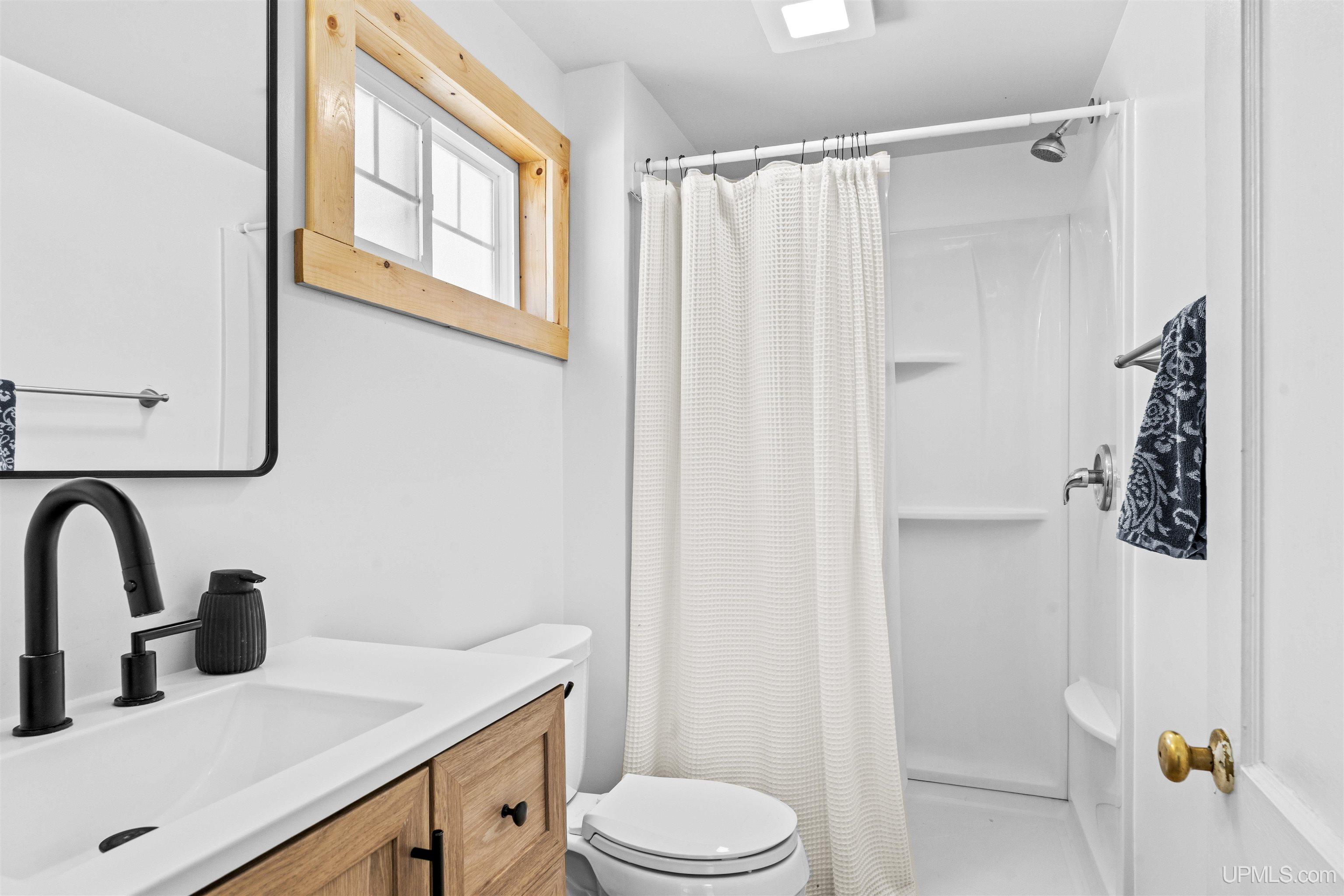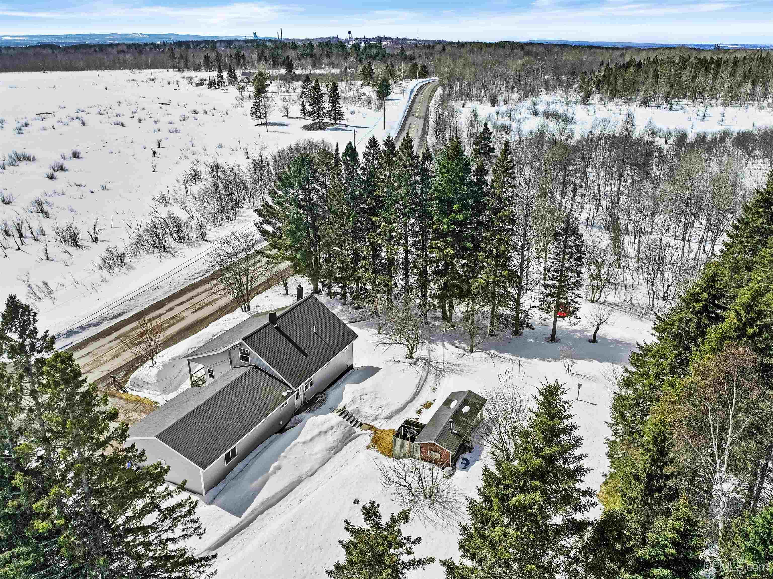 Charming Cape Cod-style home on a private, flat 147’ x 400’ lot with plenty of usable yard space. The home provides a good balance of space and functionality without being overly burdensome to maintain. Main level includes hardwood floors, a south-facing kitchen and living room, pantry, coffee nook, large mudroom with ample space for clothing and gear storage, and a designated main-level laundry room. Tongue-and-groove ceiling adds character, and a wood-fired stove in the living room provides additional comfort, along with central A/C. A fresh main-level bedroom with an ensuite bath allows for single-level living. Unfinished basement offers storage or future finishing potential. Recent updates include furnace (2025) and siding (2023). The interior presents clean and updated. Backyard includes a rustic wood-fired sauna (needs a stove). Township taxes only, with municipal sewer in place while maintaining a semi-rural setting!